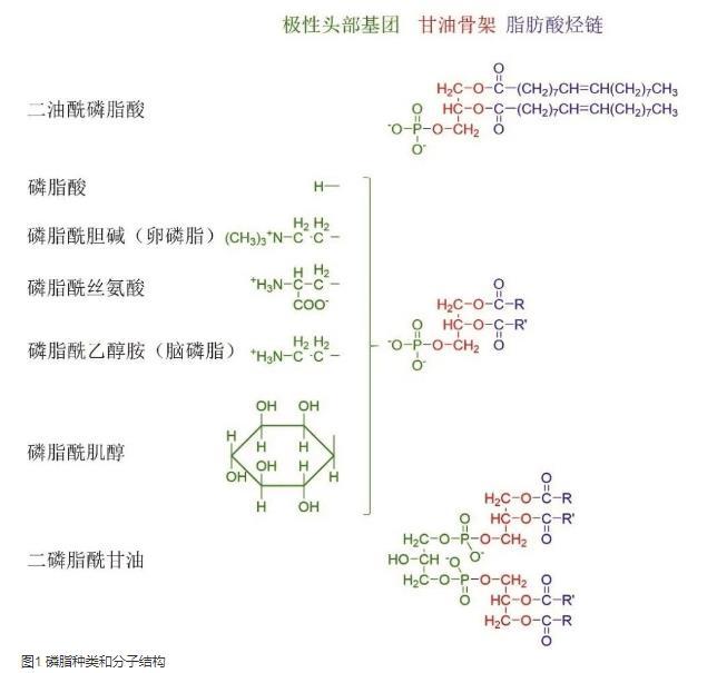 磷脂作為雙親性分子,是一種有代表性的表面活性劑。磷酸甘油酯(phosphoglycerides,PG)是磷脂的主要存在形式,其分子包含一個(gè)親水極性頭部和兩個(gè)疏水尾部,甘油骨架上1和2位羥基被脂肪酸酯化,3位羥基被連有其他基團(tuán)的磷酸基酯化(如圖1所示)。磷脂的表面活性與疏水脂肪酸的種類和親水端磷脂酸的極性有關(guān),通常以芘探針法測(cè)定臨界膠束濃度表征其表面活性。隨著界面張力儀的應(yīng)用開發(fā),采用Wilhelmy吊片法測(cè)定磷脂溶液的表面張力等溫線能夠獲得更多的分子性質(zhì)信息,如表面超量、臨界膠束濃度以及分子橫截面積等,這對(duì)于選擇磷脂種類、設(shè)計(jì)新型磷脂分子構(gòu)建新型藥物遞送系統(tǒng)具有一定的指導(dǎo)意義。