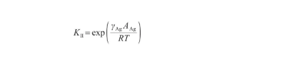 Ag-O系固-液轉變過程進行到一定限度時,系統達到平衡,自由能不再發(fā)生變化,且為最小。同時,固態(tài)、液態(tài)中的Ag原子濃度也不再發(fā)生變化,平衡系數KI表示為:
