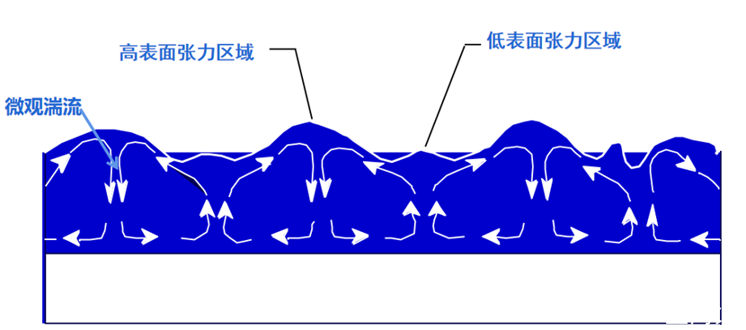 在液相涂層,在漆膜干燥過程中存在著微觀湍流。先干區域往往更多表現為樹脂本身的表面張力,液相部分還是保持有機硅或者氟添加劑的表面張力。低表面張力的液態部分會有強烈的向高表面張力的區域遷移的傾向,這樣的效果累積起來就會容易出現橘皮或者波浪紋!