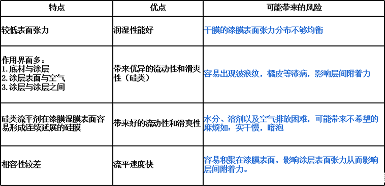 流平劑在施工完成后,都會向漆膜表面遷移,然后對漆膜表面產生影響。