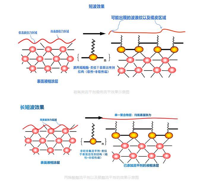 丙烯酸酯流平劑以及聚酯流平劑的效果示意圖
