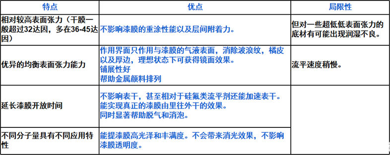 3.1各類流平劑的基本作用原理以及特性
