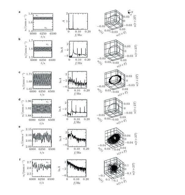 (2)目前關(guān)于液層界面張力梯度驅(qū)動(dòng)對流向湍流的超臨界轉(zhuǎn)捩在數(shù)值方法上主要有流動(dòng)時(shí)序數(shù)據(jù)的分析和分岔問題的數(shù)值算法。流動(dòng)宏觀量的時(shí)序數(shù)據(jù)來自實(shí)驗(yàn)結(jié)果或者直接數(shù)值模擬,對于后者,需要對于不同參數(shù)分別進(jìn)行數(shù)值模擬,再通過時(shí)間序列頻譜及其混沌特性的定量計(jì)算分析流動(dòng)轉(zhuǎn)捩規(guī)律,即在大量的離散的數(shù)據(jù)序列中尋找分岔點(diǎn),故此過程比較繁瑣。而通過構(gòu)造分岔方程對分岔進(jìn)行數(shù)值計(jì)算的方法雖然可以一步到位,但是在選取分岔方程,解高維線性、非線性方程等過程中均需要根據(jù)具體的流動(dòng)模型進(jìn)行調(diào)整,具有一定難度,且對于更加復(fù)雜的流動(dòng)模式需要更大的計(jì)算量,用此算法也無法直接計(jì)算得到混沌解。上述兩種方法各有優(yōu)缺點(diǎn),目前在轉(zhuǎn)捩過程的數(shù)值研究中較為常用的仍是在不同參數(shù)下進(jìn)行直接數(shù)值模擬,而后對大量數(shù)據(jù)進(jìn)行頻譜分析,識別分岔點(diǎn);在直接對分岔進(jìn)行數(shù)值計(jì)算的研究中,也常常需要通過直接數(shù)值模擬來驗(yàn)證分岔得到的解的可靠性與準(zhǔn)確性,在今后的研究中可考慮進(jìn)一步將兩種方法結(jié)合運(yùn)用,互相補(bǔ)充、驗(yàn)證。