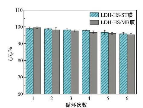 受這些啟發,本研究考慮到LDH粉末的片間夾層結構容易變形、回收困難等缺點,預想能夠在分子水平上制備出行為可控的薄膜結構。目前關于LDH和染料分子自組裝的文章還鮮有報道。因此,本研究工作利用陰離子交換法和LB技術成功地在氣-液界面制備了一種新型有序的LDH-HS/染料自組裝復合多層膜。