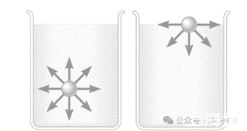 上圖左邊表示的是液體內(nèi)部的水分子,受到周邊水分子各個方向均勻的吸引力,合力為零;右邊表示處于表面的水分子,受到下方水分子的吸引力,上方無水分子不存在吸引力,這樣下方水分子合力不為零,方向往液體內(nèi)部。