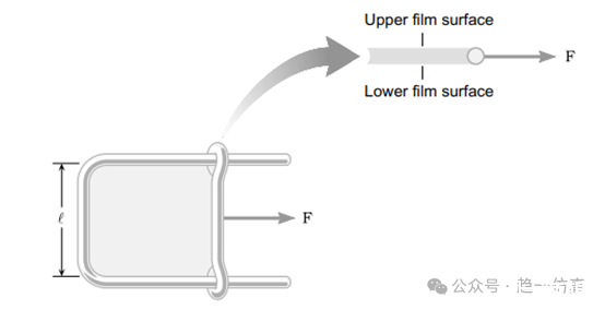 為了測量液體的表面張力,可以用這樣的理想裝置: