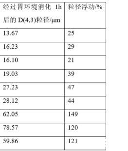 根據表1-3的數據可知,采用本方法制備的玉米內源組分乳液具有粒徑小、穩定性好、乳化能力強、降低油水界面張力等優點,能夠在胃液消化階段抵抗胃環境脅迫,實現對功能組分的保護。進一步地,當玉米谷蛋白酶解產物的水解度在優選的1-4%范圍內,乳液具有更高的穩定性。