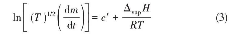 將ln[(T)1/2(dm/dt)]對1/T作圖,通過直線的斜率求出ILs的汽化焓ΔvapH。