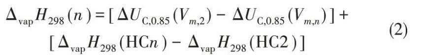綜合考慮庫侖力和范德華作用力,經過一系列復雜的推導,得到了[Cnmim][Tf2N]汽化焓ΔvapH298的計算公式