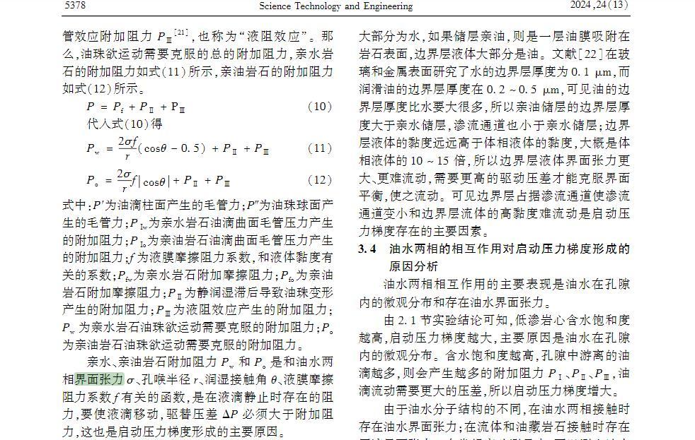 油藏儲層油水界面張力是形成啟動壓力梯度的微觀成因