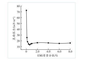 對不同質量分數的EMI溶液進行表面張力測試,結果如圖2所示。