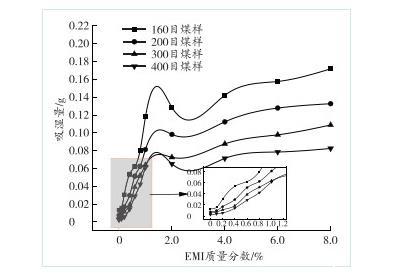 2.3 EMI質量分數對煤塵吸濕性的影響