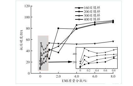 圖10煤樣板結硬度與溶液中EMI質量分數的關系