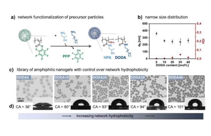 圖1.具有不同網絡疏水性但類似膠體性質的兩親性納米凝膠庫