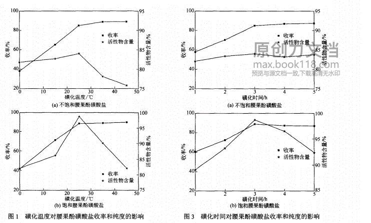 表1磺化劑對腰果酚磺酸鹽收率和純度的影響