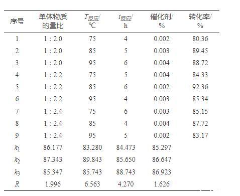 表1正交實驗優化反應條件