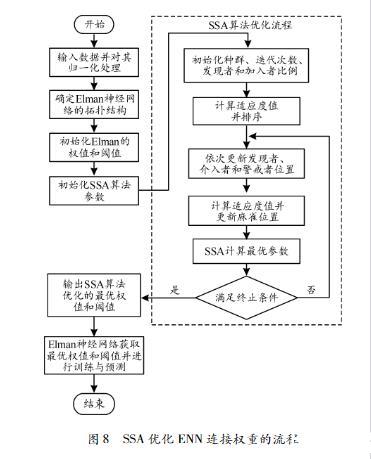 7)將SSA優(yōu)化后得到的最優(yōu)權(quán)值和閾值參數(shù)輸出傳遞至ENN,以最優(yōu)的SSAENN模型訓練和預測數(shù)據(jù)。