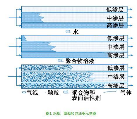 圖1水驅、聚驅和泡沫驅示意圖
