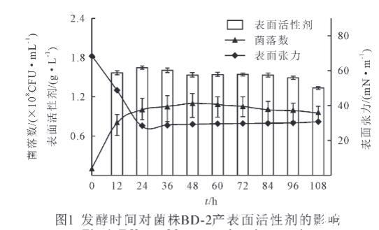 2.2發(fā)酵時間對菌株BD-2產表面活性劑的影響
