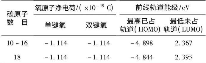 表1不同碳鏈長度的羧酸氧原子凈電荷及軌道能級