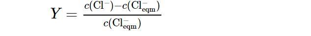 式中:c(Cl?)(mol/L)為溶液中Cl?的總摩爾濃度;c(Cl?eqm)(mol/L)為由于NaCl的加入而增加的Cl?的摩爾濃度.每組實驗均在Cl?的超額含量Y=0.5的條件下進行.