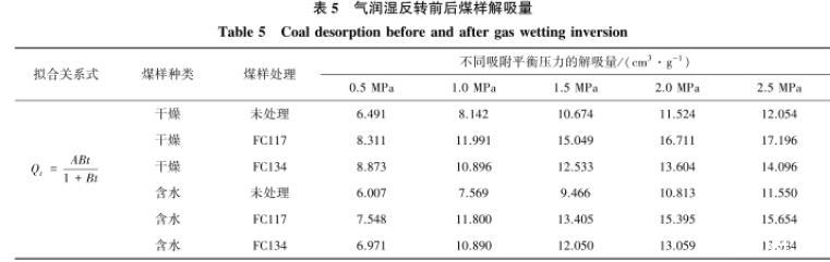 表5氣潤濕反轉(zhuǎn)前后煤樣解吸量