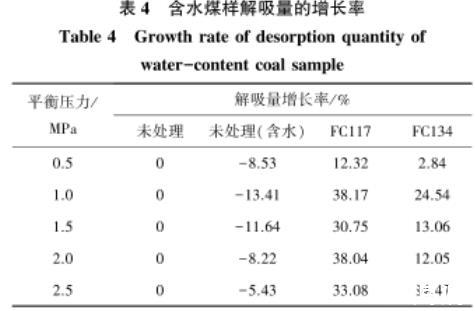 表4含水煤樣解吸量的增長率