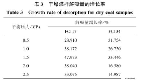 表3干燥煤樣解吸量的增長率