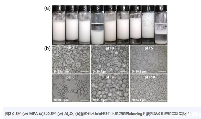 > pH對(duì)馬來松香MPA與納米Al2O3顆粒形成的Pickering乳液類型、表/界面張力影響(三)