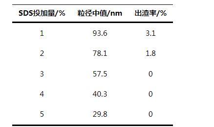 表1 SDS投加量對產品性能的影響