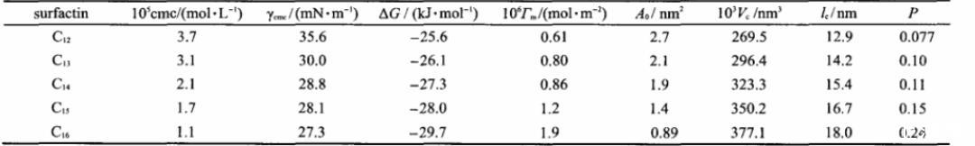 由一系列表面活性素溶液表面和界面活性實驗可以看出,隨著表面活性素脂肪鏈長度的增加,使得表面活性素的表面、界面活性加強(qiáng),更有助于膠束的形成。