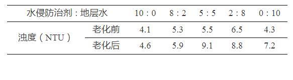 表2水侵防治劑與地層水的配伍性