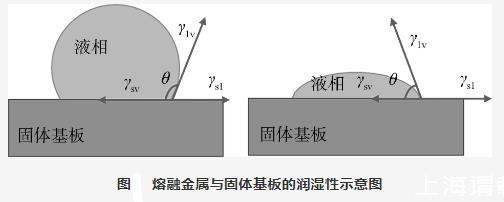 越大,說明液態金屬對固體基板的潤濕性越差;反之,越好。當