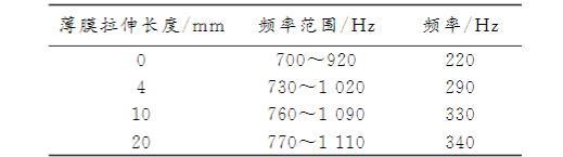 表3薄膜拉伸長(zhǎng)度與吸聲系數(shù)>0.6對(duì)應(yīng)的頻率范圍表