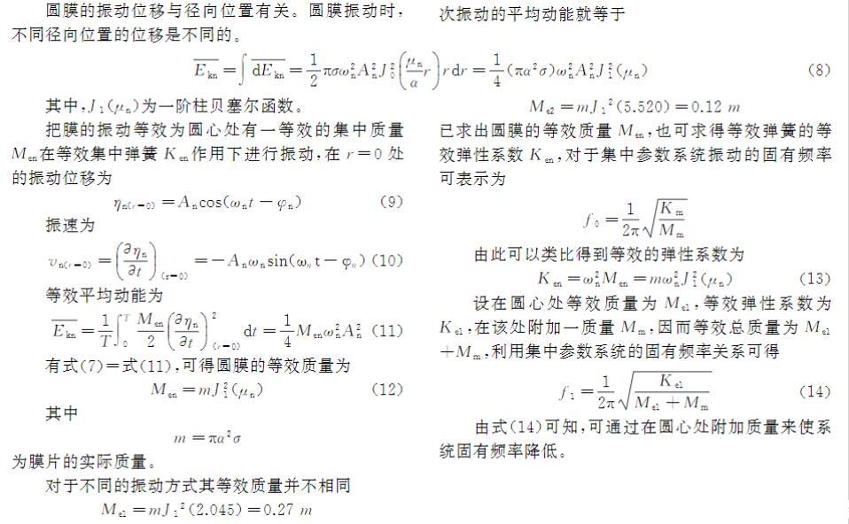 MAMs由一個(gè)或多個(gè)微小中心質(zhì)量塊粘結(jié)在薄膜上組成的二維周期性陣列結(jié)構(gòu)構(gòu)成。研究表明,衡量其隔聲降噪效果的傳遞損失(TL)與多種參數(shù)相關(guān),包括幾何尺寸、質(zhì)量塊分布、中心質(zhì)量塊質(zhì)量、薄膜厚度和薄膜預(yù)應(yīng)力(表面張力)等微結(jié)構(gòu)參數(shù)。現(xiàn)有研究對(duì)附加質(zhì)量塊非中心布置和多質(zhì)量塊布置的影響有所涉及,但仍缺乏實(shí)驗(yàn)驗(yàn)證。本文在現(xiàn)有成果基礎(chǔ)上,通過(guò)有限元仿真與實(shí)驗(yàn)對(duì)比,研究由彈性薄膜和質(zhì)量塊構(gòu)成的MAMs的隔聲特性。
