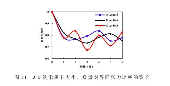 圖11 2-D納米黑卡大小、數量對界面張力比率的影響