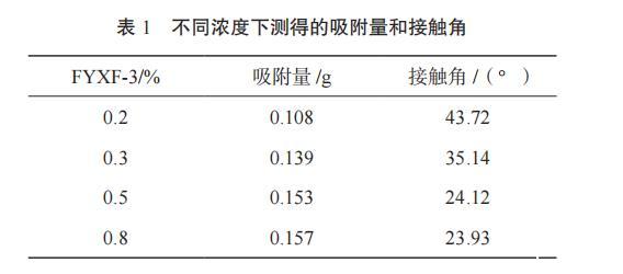 表1不同濃度下測得的吸附量和接觸角