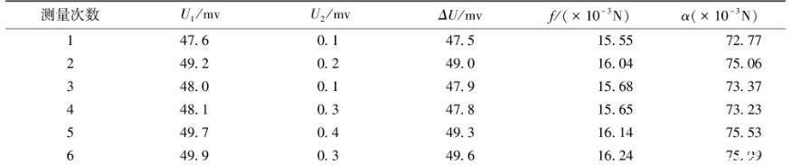 用原有的金屬吊環(huán)測量純水在25℃時(shí)的液體表面張力系數(shù)的數(shù)據(jù)見表2。