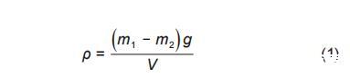 式中,m_1為懸掛于電子天平底部密度探頭的質(zhì)量,g;m_2為密度探頭浸入到待測液體內(nèi)電子天平的數(shù)值,g;g為重力加速度,取9.81 m/s^2;V為探頭的體積,m^3。