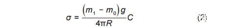 式中,R為拉筒底環(huán)平均半徑,m;m_1為拉筒脫離熔鹽液面時電子天平的最大讀數(shù),g;m_0為拉筒質(zhì)量,g;g為重力加速度,取9.81 m/s2;C為儀器系數(shù)。
