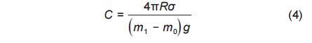 采用拉筒法測量納米熔鹽液體表面張力前,可通過測量已知液體的表面張力,通過式(4)對表面張力實(shí)驗(yàn)臺(tái)的儀器系數(shù)進(jìn)行標(biāo)定。