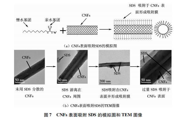 CNFs能夠在水性體系中實現(xiàn)分散是由于表面活性劑分子在水溶液中會吸附或包裹在CNFs的表面,這種吸附或者包裹作用不會破壞CNFs的結(jié)構(gòu)與形