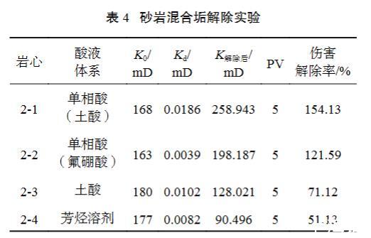 表4砂巖混合垢解除實驗
