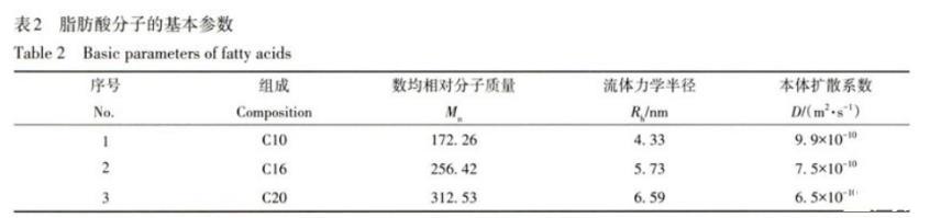 表2脂肪酸分子的基本參數