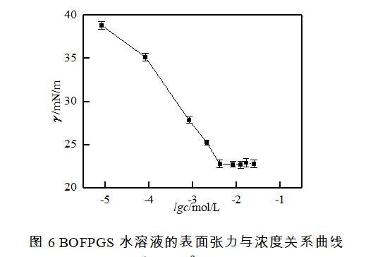 圖6 BOFPGS水溶液的表面張力與濃度關系曲線
