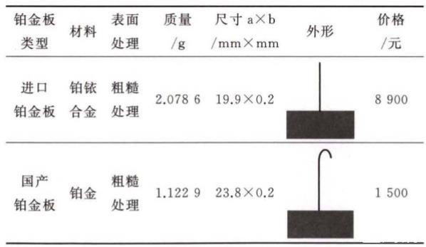 原配進口鉑金板和BZY-1原配國產鉑金板的主要區別如表1。