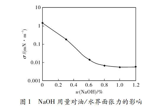> 氫氧化鈉用量對重烷基苯磺酸鈉水溶液/油體系界面張力的影響(一)
