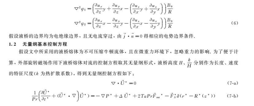 基于浮區法晶體生長中非均勻旋轉磁場對流控制研究工作鮮有的現狀,為了進一步完善外加旋轉磁場對浮區熔體的對流控制的理論研究,筆者引用了有限長-α模型的思想,建立了三維磁流體動力學模型,研究了微重力下外加二極對非均勻旋轉磁場對浮區熔體表面張力對流的控制作用。