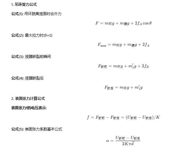 K為力敏傳感器靈敏度,通過定標(biāo)來確定。吊環(huán)的內(nèi)、外周長之和為π(d1 + d2),d1和d2為吊環(huán)的內(nèi)、外直徑。用d? = (d1 + d2)/2表示其平均直徑,所以表面張力系數(shù)可表示為
