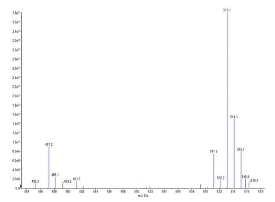 OSB:IR:3370 cm-1(N-H)、1657 cm-1(C=O)、1552 cm-1(N-H)、1459 cm-1(酰胺鍵中的C-N)、1047 cm-1(季銨基中的C-N)、1201 cm-1和530 cm-1(-SO3-)。ESI-MS:m/z=491.3,489.2分別歸因于由油酸甘油酯(C18:1)和亞油酸甘油酯(C18:2)與H+衍生的羧基甜菜堿;m/z=487.2、485.3、515.1、513.1、511.2分別與從棕櫚酸甘油酯(C16)、棕櫚烯酸(C16:1)、硬脂酸甘油酯(C18)、油酸甘油酯(C18:1)和亞油酸甘油酯(C18:2)中提取的含Na+的羧基甜菜堿相匹配。